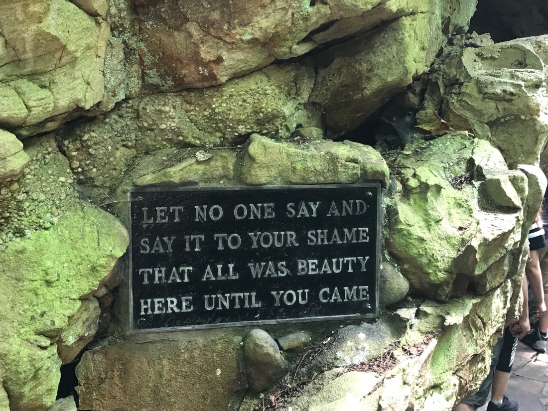 Rock City did not disappoint either! Basically this guy and his wife owned a bunch of property on Lookout Mountain. She loved gardening and created a path with different gardens and lots of gnomes. They opened their backyard to people and it was such a hit they decided to make it a thing and created Rock City. It was very neat to walk around and see all of the beautiful rock formations and simply meander along the mountain. The views certainly did not disappoint. Supposedly you can see seven states from the top of Lover’s Leap.