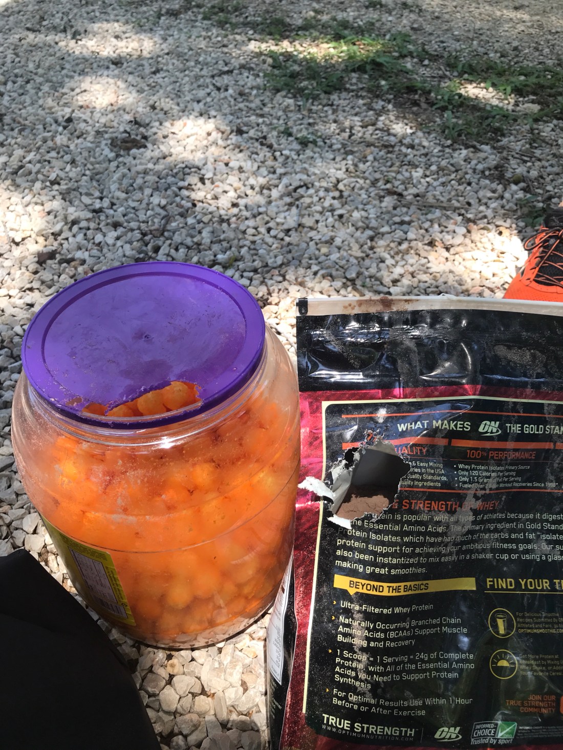 Then, when we got home, we found that the ants had worked their way into our dry cooler and eaten through much of the stuff. Sad.