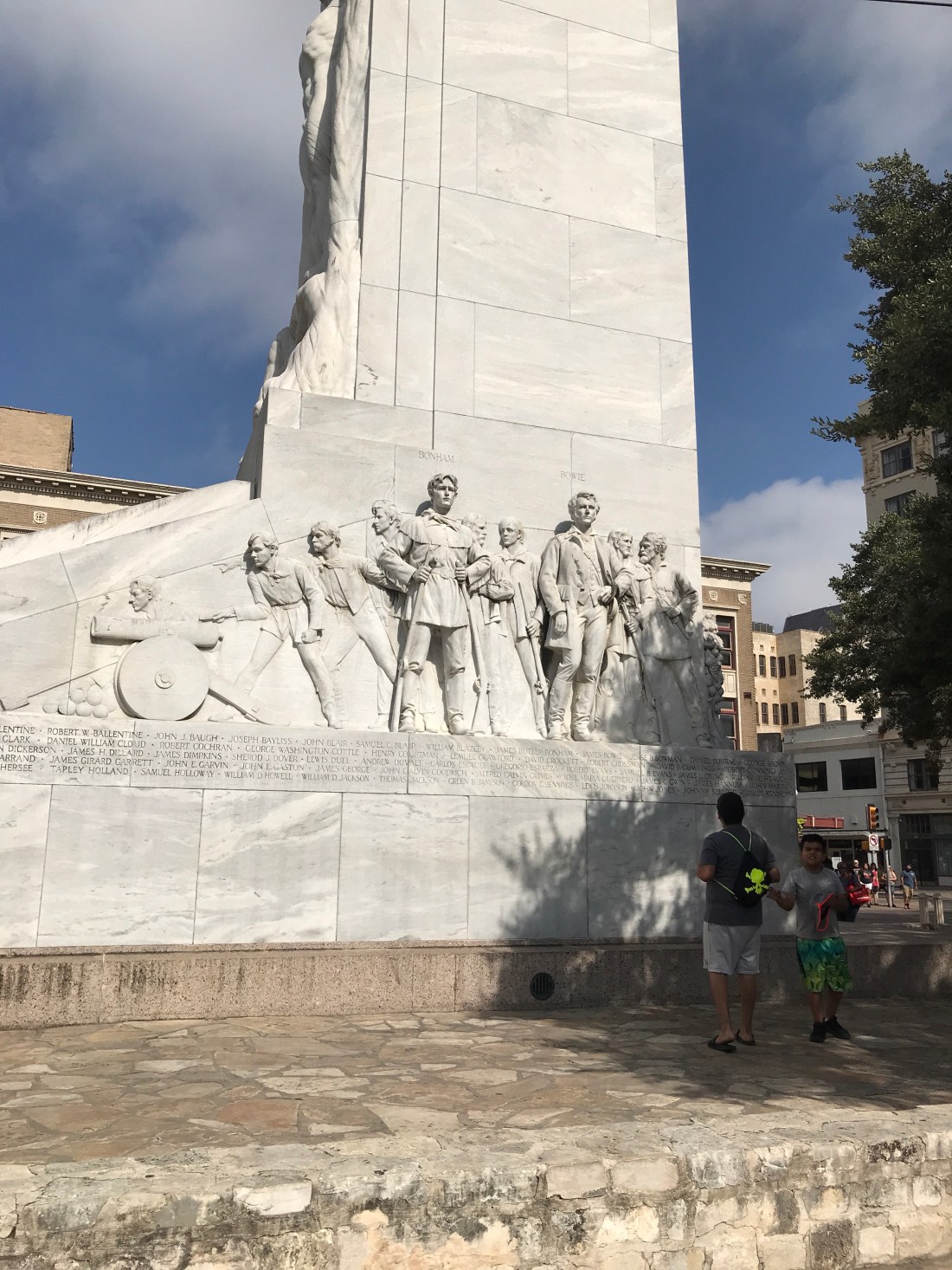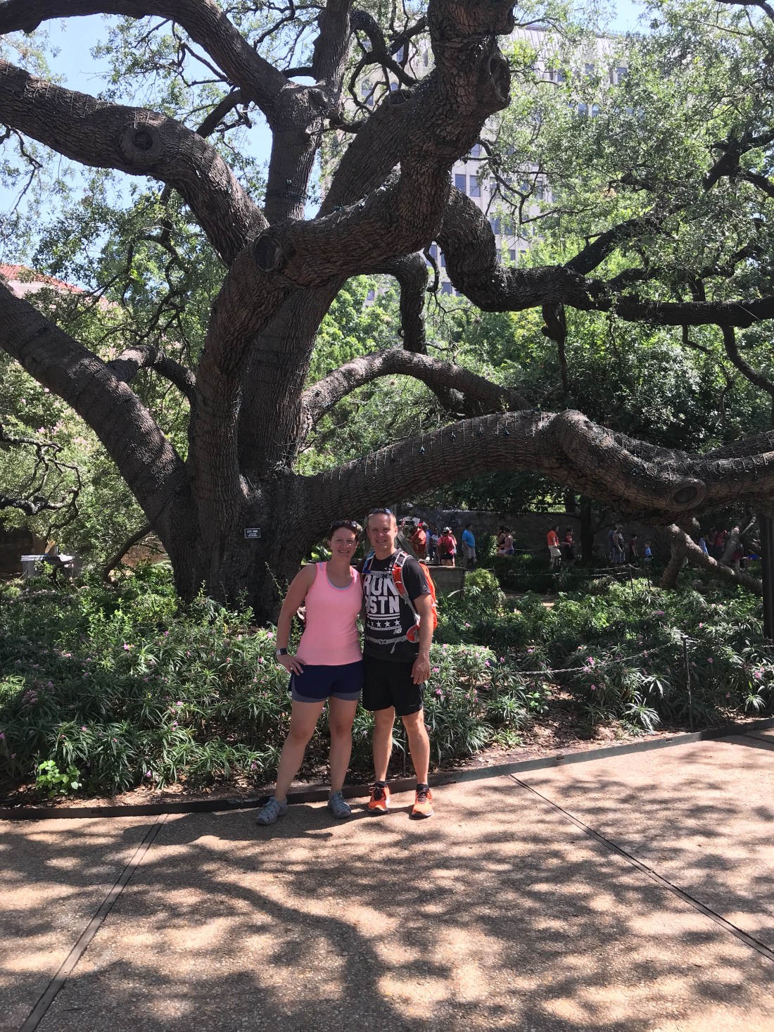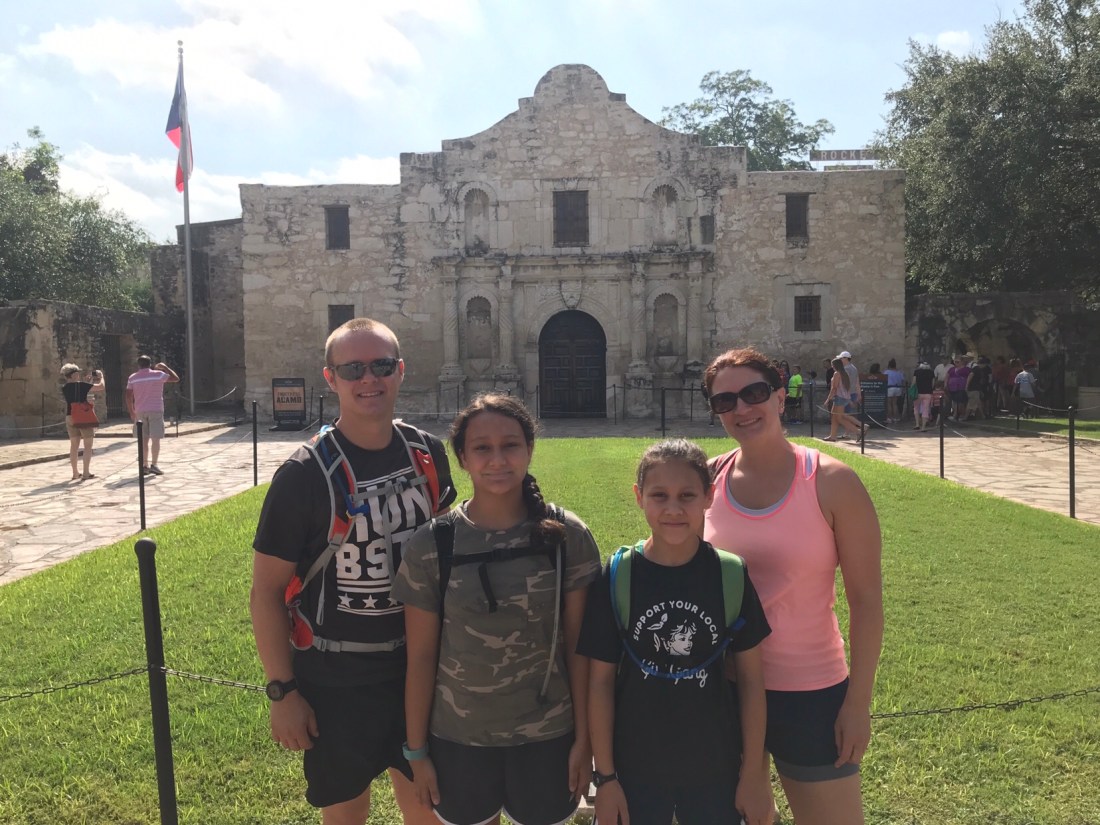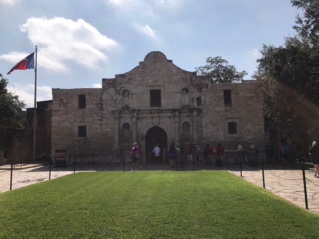 We started our day with our mile run in an effort to beat the heat. This was only mildly successful. Then it was showers and pack our lunches quickly so we could get to Safelite for our 9:30 appointment. For those of you wondering, they do send people out to fix the windshield, but the next time they could do that is Monday. We leave here Sunday. So we dropped it off and took a lyft to the Alamo.