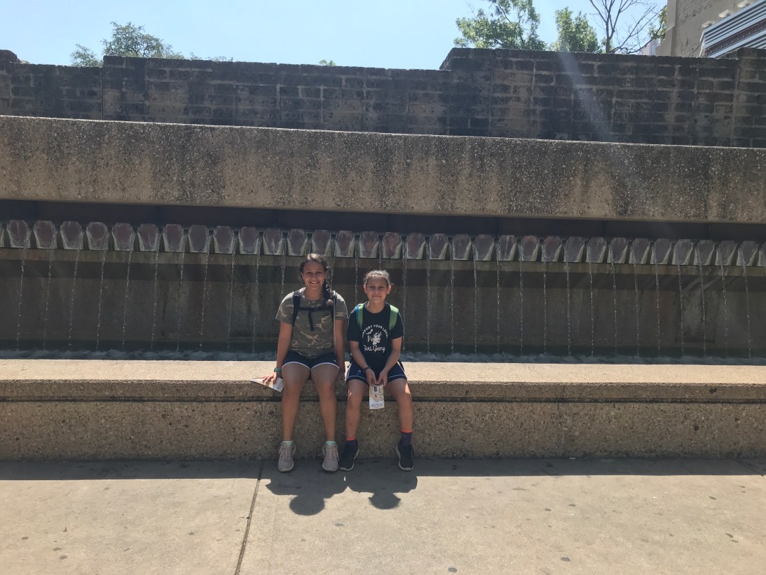 I have also been struck on this trip by how this is an excellent age to do this with the girls. They’re old enough to go off and play with people in the campground, or go ahead into the next room of a museum, and go to the showers and the bathroom by themselves. We have run into a lot of other families traveling with much younger children and this seems like a lot more maintenance. I’m not saying traveling across the country and spending many hours in the car with an 11 and almost 13 year old is a walk in the park, but I do think it could be worse!